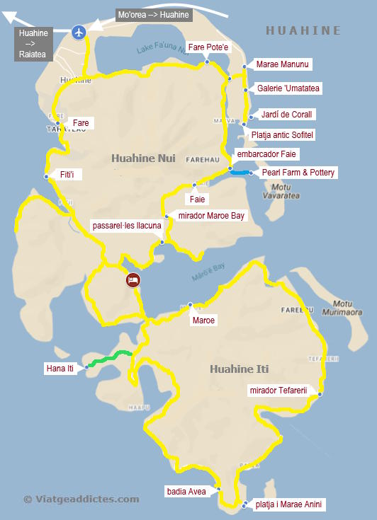 aeroport HUH (Huahine) - Fare - Maroe - volta a Huahine Nui i Huahine Iti - Maroe