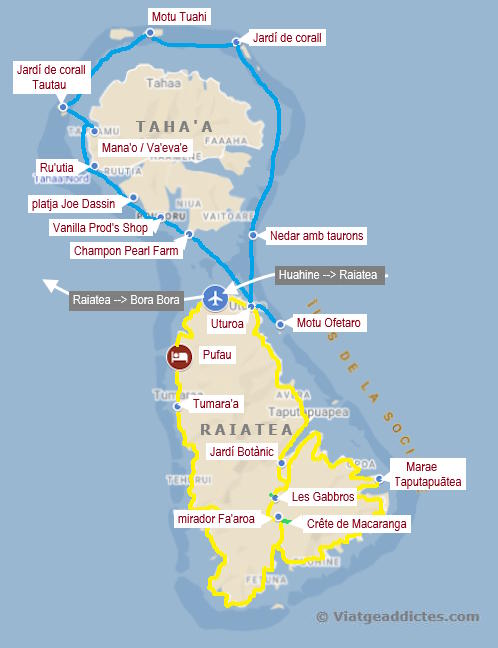 Dia 21 (10/7): Pūfau - Uturoa - excursió en barca per la llacuna de Taha'a - Uturoa - Pūfau