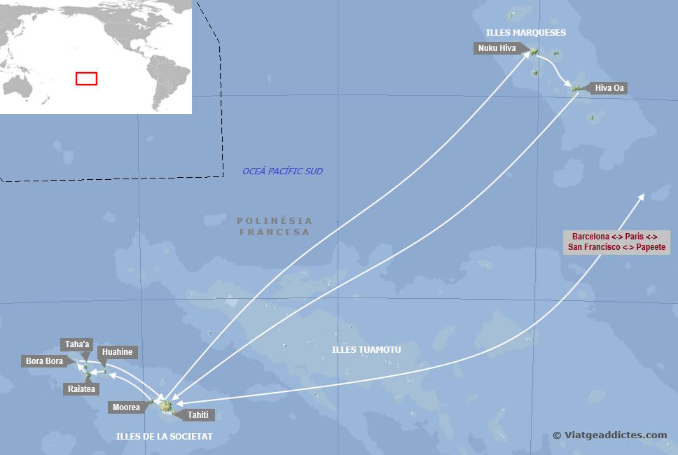Un cop vam decidir que ens centraríem en dos dels arxipèlags la qüestió passava a ser quins escollir, tot i que la configuració dels passis aeris d'Air Tahiti ens van facilitar molt l'elecció.