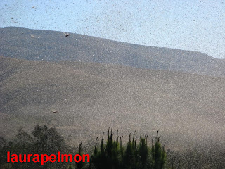 Es realmente alucinante, parece como una tormenta de arena que se acerca a gran velocidad. Hay millones de langostas. La gente va con redes para atraparlas y comérselas. El camino está lleno de ellas y entran por el coche.