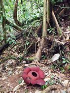 Dado que apenas florecen una treintena durante todo el año, hay que pedirle al hotel que llame cada día a las oficinas del parque para preguntar si ha crecido alguna. Ayer nos dijeron que había florecido una rafflesia y que está en su cuarto día de floración, así que hay que darse prisa. Acceso al parque 10rm y 20rm por el guía que nos acompaña hasta la flor, ya que al estar lejos del camino principal es la única manera de encontrarla. Hace mucho calor y la humedad es del 100%, pero cuando llegas se te olvida todo, es impresionante. La flor está cubierta con una malla para protegerla de ardillas y otros enemigos naturales. Tiene unos 50cm de diámetro y unos 25 de altura. Despide un olor a basura podrida que se percibe solo al acercarte mucho, y su tacto es rugoso pero suave. Hacemos tantas fotos como la densa selva nos deja, no hay mucha luz. El guía no nos mete ninguna prisa. Una vez en el camino principal realizamos media hora de sudorosa caminata hasta la primera cascada. El entorno es fantástico, corre el agua, saltan las ranas, cantan o gritan todo tipo de insectos, y los árboles nos protegen del sol. Permanecemos una hora allí relajados, disfrutando del entorno.